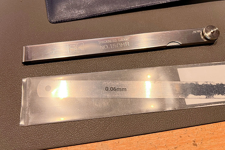手持ちの新潟精機 150MRが吊しのままだと今回の目標値を測定できないので0.06mmのリーフを1枚購入しました。