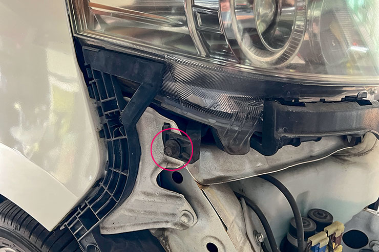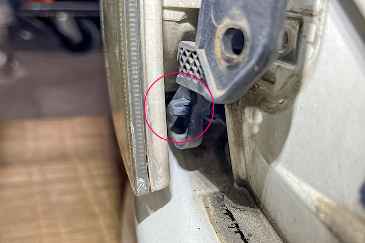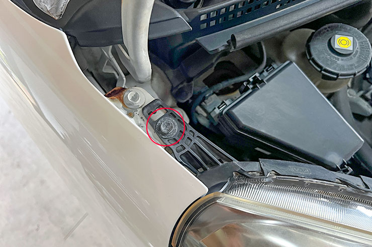 あとはタイヤハウス側から前方に向かって引っ張ってやればOKですが、ヘッドライト下側は隙間からツメを押した方が外しやすいというか破損を防げるかと思います。