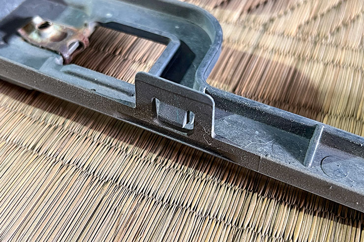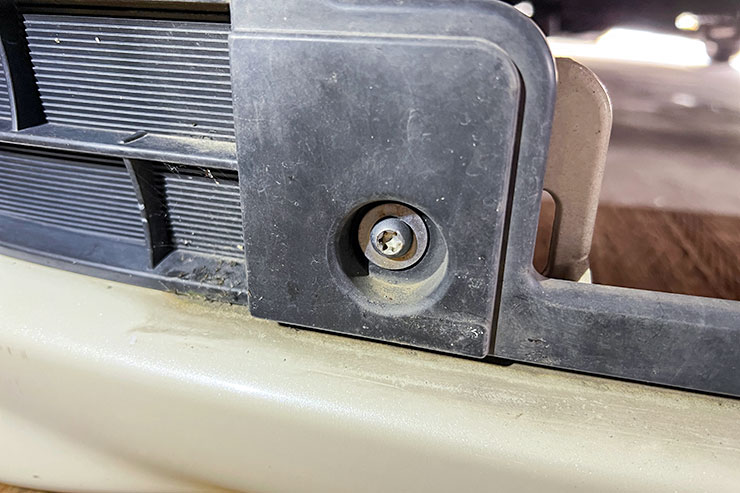 グリルを外すにはまずナンバーを外して、その下に隠れていたビスを外します。