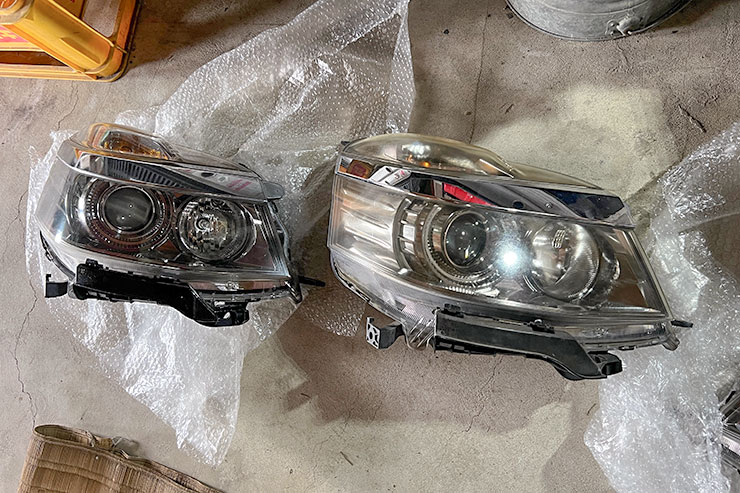 そこで塗り替え用に中古のヘッドライトを買って、空き時間に下処理して塗っておいてから今着いているヘッドライトと交換すれば時間的に余裕だなと思いヤフオクで探していたのです。