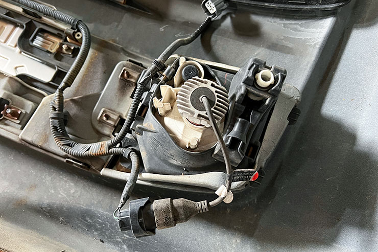 あとバルブに繋がっているコネクター類も全て外しましょう。ハイ・ロー・ウィンカーとHIDのバラストにレベライザーの5箇所ありますのでね。