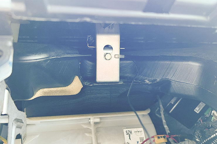 外すとこんな感じでナビの取付ブラケットの固定ビスが5箇所見えます。