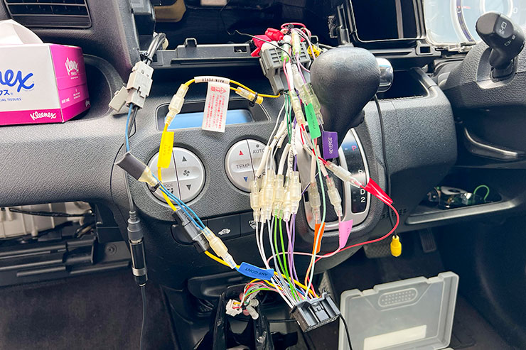 メインハーネスとラジオ・テレビ・GPS・バックカメラですね。アースも忘れずビスで取り付けておきましょう。