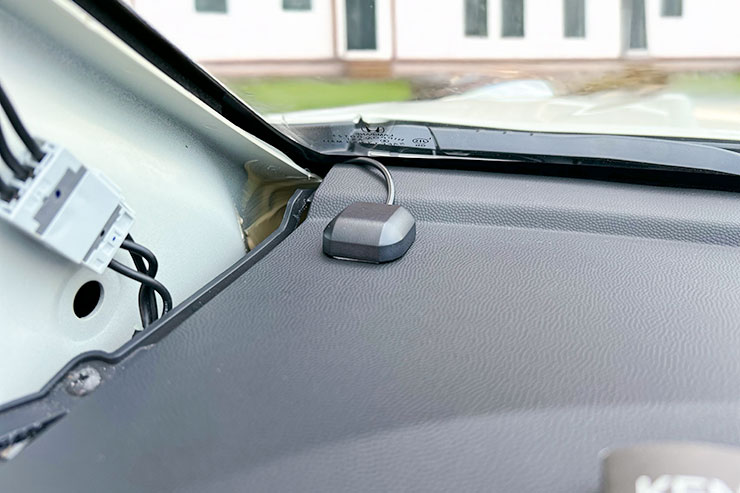 GPSアンテナを貼り付けました。今まで通りの位置です。