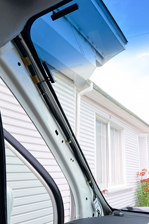狭い開口部から何とか手を突っ込んでコネクターを引っ張ろうかと頑張りましたが無理だったので、ワイパーの骨の先端をJ字に曲げたものを突っ込んで引っ掛けて何とか引っ張ることが出来ました。