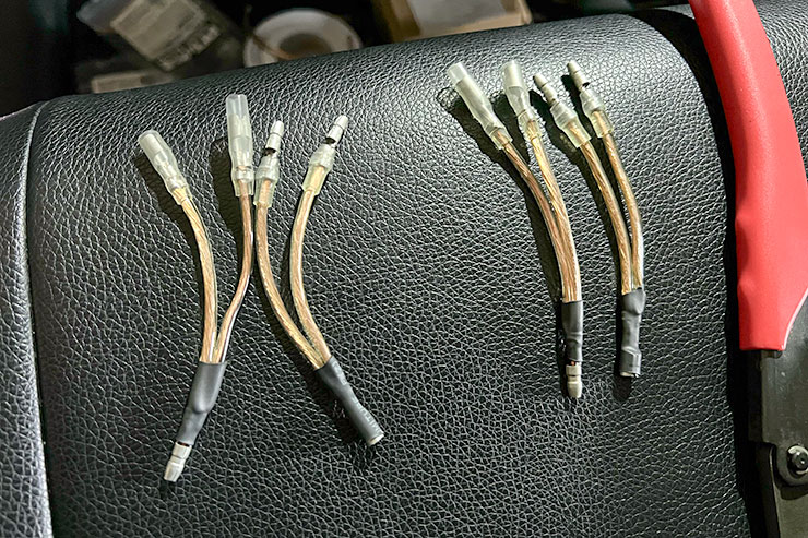 続いてツィーターの取り付けですが、ネットワークを介する必要がありますので在庫しているAmazon ベーシックのスピーカーケーブルで分岐配線を作りました。