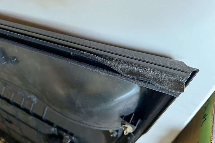 この水切りが変形していて窓を下ろすと巻き込まれてモーターに負荷が掛かっている感じがしていたので交換したかったのです。