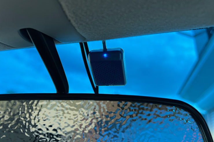 本体は運転席右下のポケットに貼り付けました。過去にここへ取り付けていたようで丁度良い穴が開けられていたのでそのまま利用しました。