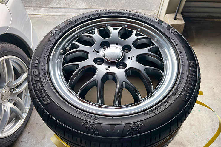 ちなみに純正セットに着いていたヨコハマのエコスES31は柔軟性があって外す際も組む際も至ってスムーズでしたが、クムホは外すときチェンジャーがガタガタ揺れるほど外しにくかった模様です。とにかく固くなっていてビードがミチミチいっていました。楽に外せるはずのレバーレスチェンジャーなのに。