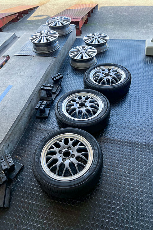 ホイールが届いた日に予約状況を見てみると、運良く週末空いていたのでいつもの優良店へ持ち込みました。