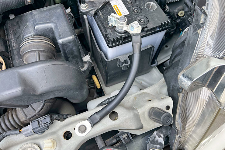 ちょっと気になっていたバッテリーとボディ間のアース線、それと錆びているバッテリーターミナルを交換しようかと思い立ちまして。