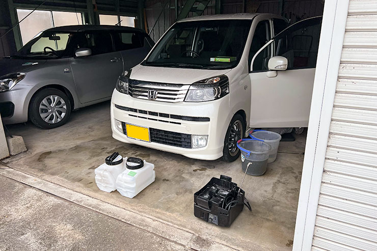 事前に新品エアコンフィルターだけ用意する必要がありますが、それ以外の水とか電気の用意は不要です。晴れていれば屋外でも施工可能ですね。