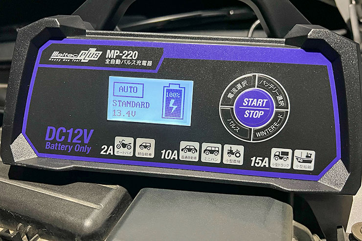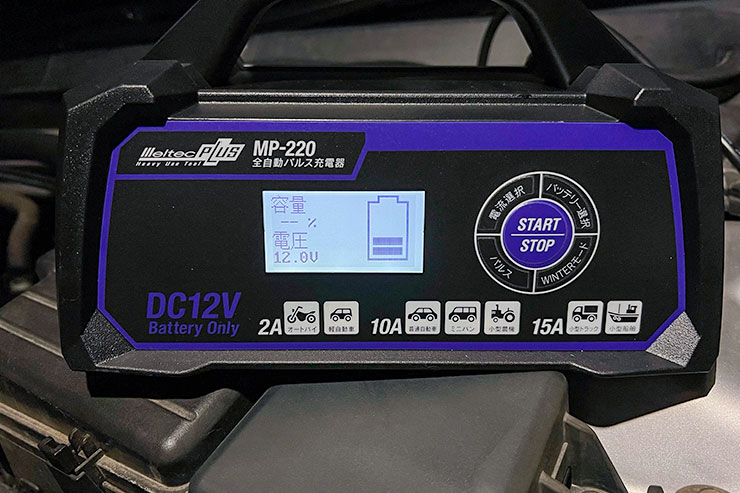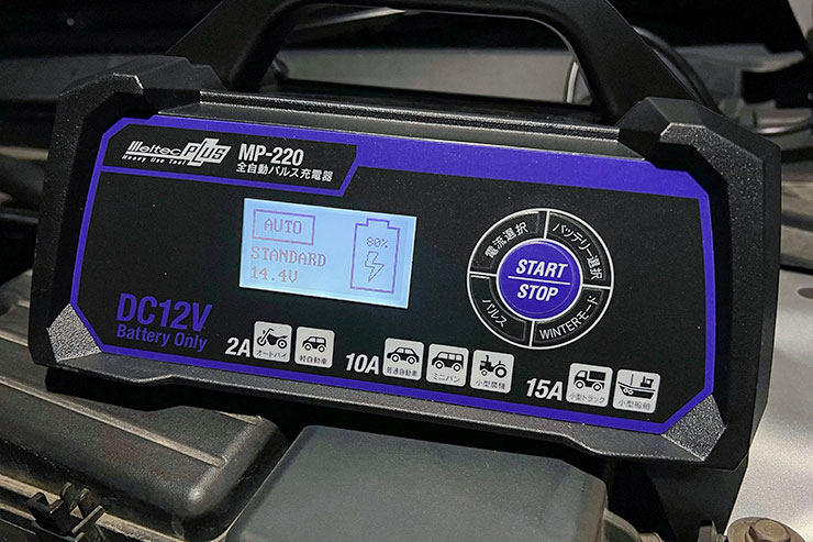 トランス式と違ってスイッチング式は車体からバッテリーを切り離さずとも充電できるのは楽ですね。