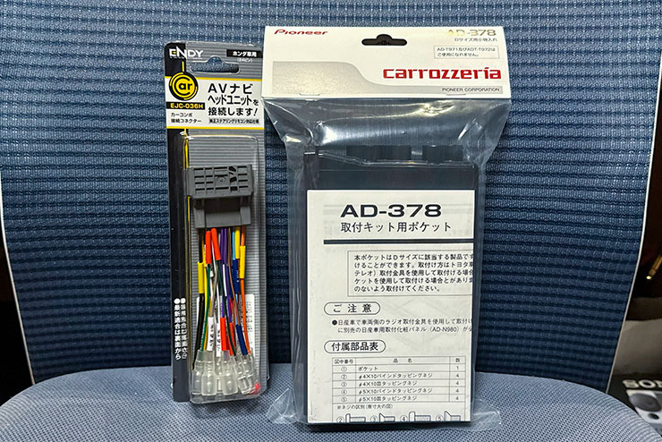 一緒にこちらも購入しました。オーディオハーネスと1DINポケットですね。