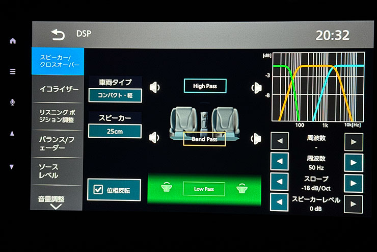 ローパスは50Hz -18dB/octでだいたい良い感じになりました。8インチの時より20Hz下がりましたね。