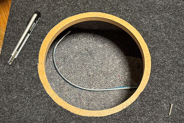 罫書くために少しだけカーペットを切りました。カッターで簡単に切れます。