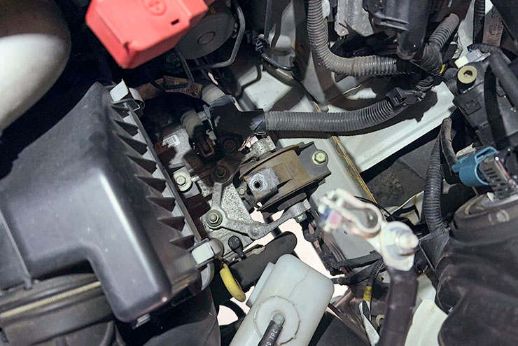 これまた納車時から気になっていたものですが、エンジン振動が多く助手席足下からキリキリキリ…とかキュルキュルキュル…と異音が出ていたのです。