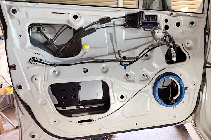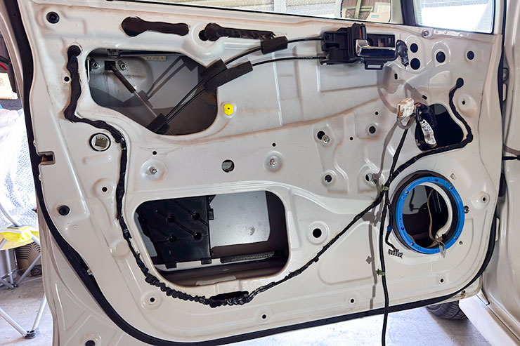 オーディオテクニカのAT-AQ770を使用します。スポンジっぽく見えますがEPDM(合成ゴム)なので水は吸いませんから湿気ってドア内が錆びる可能性は低いのかなと思っています。
